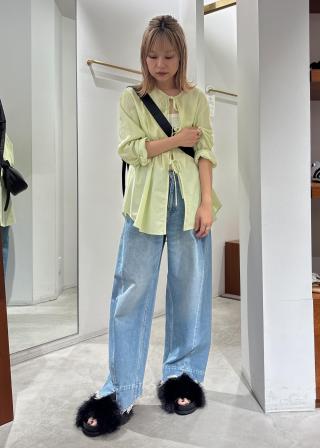 肩出しのトップスや丈の短いトップスとも合わせやすく、着こなしに変化を加えることができるアイテム。