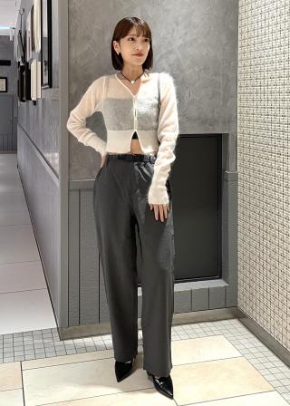 シアートップスとのレイヤードスタイルやカーディガンやジャケットなどのインナーとして重宝する1枚。
