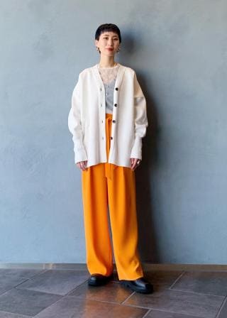 全体的にゆったりとしていますが、裾にかけて内に入るシルエットなのでバランスがとりやすいです◎