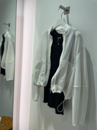 メッシュとワッシャーナイロンを組み合わせた、ブルゾン見えするショート丈カーディガン。後ろ身頃や袖など、所々に施されたパイピングデザインが全体感にメリハリをつけてくれるデザイン。フロントジップ横やポケットの仕様を立体感が出るように仕上げたり、ボトムとのバランス調整が可能なように裾がドロスト仕様になっているなども、こだわりのポイント。きゅっと絞って丸みのあるシルエットにしたり、絞らずにふわっとしたシルエットで着用したりと、着回し力の高さが嬉しい一着。