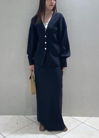 同素材のタイトスカートとセットアップで着用するのもおすすめ。