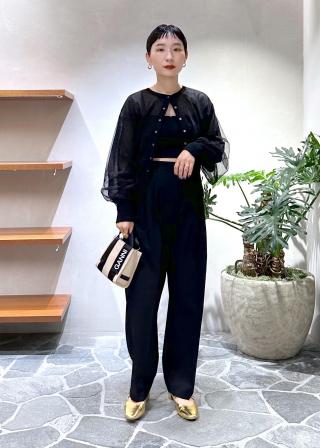 適度なシアー感なので、インナーをキャミソールやタンク、Tシャツやカットソーなど様々にレイヤードを楽しめる一着。ワイドなボトム合わせ、キャミワンピースやオーバーオールのインナーにも。