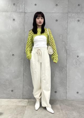 キャミソールやTシャツなどインナー次第で様々なスタイリングを楽しめるざっくりニット。ボリューム感のあるカーゴパンツや、ワンピースとのレイヤードスタイルもおすすめ。