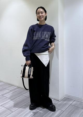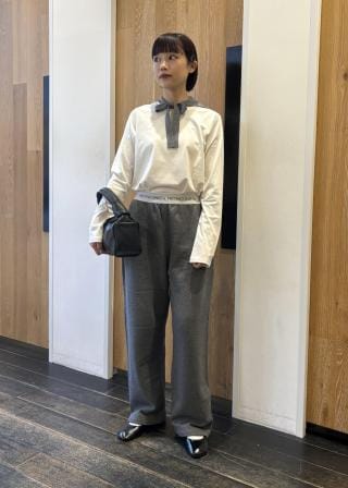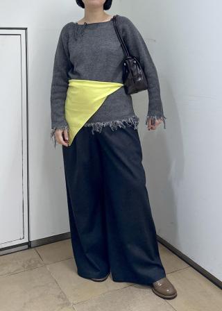 コンパクトなニットはワイドパンツやデニム合わせがおすすめ。
