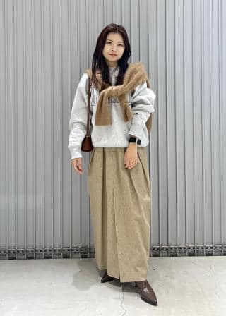 同素材のブラッシュカシミアストール(品番:GAN25020)と共に首に巻いてセットで着用するのもおすすめ。