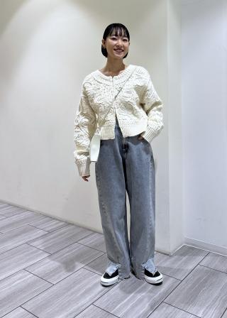 丈はショート丈なので、下半身が隠れずハイウエストのボトムスと相性◎