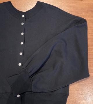 前後2WAYの裏毛カーディガンはボリューム袖がが可愛いのが特徴、丈感もショート丈でバランスが取りやすいです。