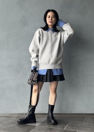 スカートやきれいめなボトムで合わせるのはもちろん、デニムでカジュアルに着崩すのもおすすめ。
