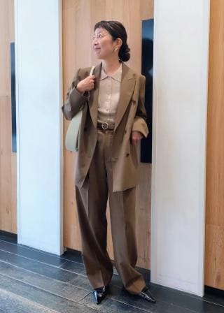シャープな襟と長めの着丈でメリハリを付けモード感もプラス。