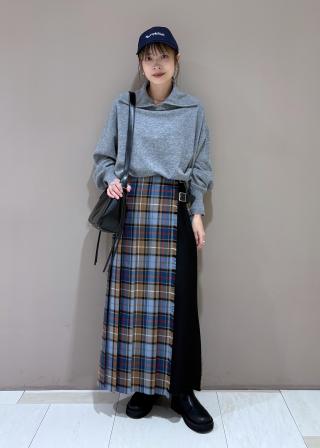 スカートを合わせてもフェミニンに着こなしができるニット。