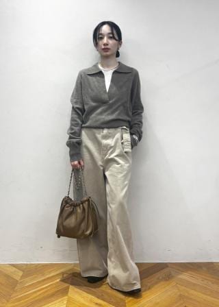 深Vネックになっていて、レイヤードスタイルが楽しめます!生地もそこまで厚くないので、夏前まで長く楽しめるアイテムです♪