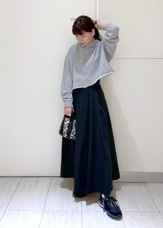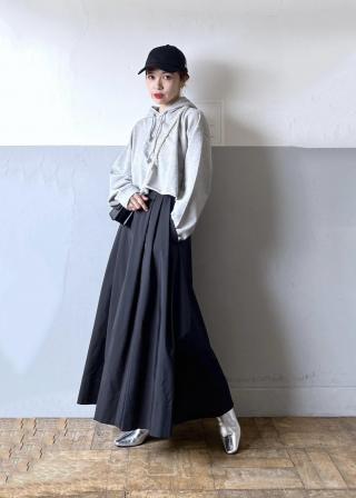 クロップド丈なのでボリュームのあるボトムとも相性◎