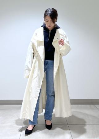 ハイウエストのボトムと合わせるのが好相性。ジップを少し開けて襟元に抜け感のでる着こなしも素敵。タイトスカートに足元はスニーカーなど、女性らしさのあるスポーティMIXなスタイリングがおすすめ。