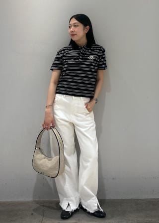ワイドなパンツやスカートの上に着るだけでトレンド感とオシャレ感が出るポロシャツ!