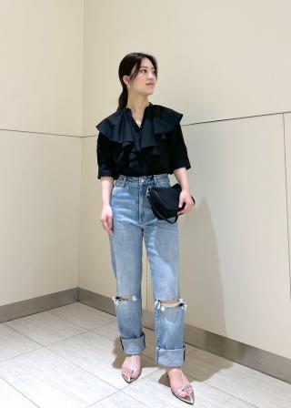 スラックスパンツを合わせればモードな印象に、デニムを合わせれば大人の上質カジュアルスタイルが完成。タイトスカートで合わせた女性らしいエレガントな装いもおすすめ。フリルデザインがあるので、スタイリング次第で、フェミニン・エレガント・モードと、様々なテイストを楽しんで。オフィススタイルにも、デイリースタイルにもぜひ。