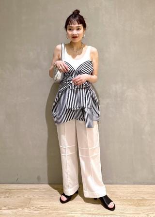 キャミソールやタンクトップにスラックスパンツを合わせたスタイルに、さっと羽織るようなスタイルが、こなれた雰囲気が出ておすすめ。