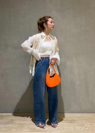 キャミソールやタンクトップにスラックスパンツを合わせたスタイルに、さっと羽織るようなスタイルが、こなれた雰囲気が出ておすすめ。