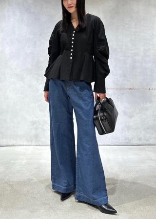 肩が張って見えないフォルムスリーブのギャザー分量やボトムに合わせやすいサイズ感にこだわった1枚。