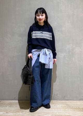 ネイビー:身頃はネイビー×ホワイト×細ブラウン、袖と肩ヨークは細めのネイビー×ホワイト