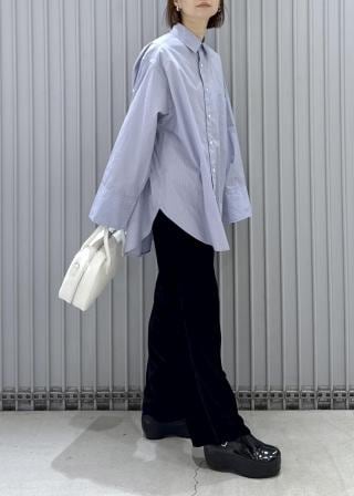 オーバーサイズで長めの着丈のシャツ。