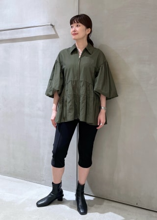 キャミに羽織ってジップを閉じ、ブラウスとして着用したり、タンクやTシャツの上に軽羽織として着用するのもおすすめ。