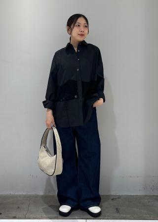 シルエットはシンプルなオーバーシャツ型のため、内部で遊びを効かせた一着に。