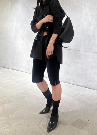 今季のおすすめは、新鮮なボトムであるニットカプリパンツとのスタイリング。