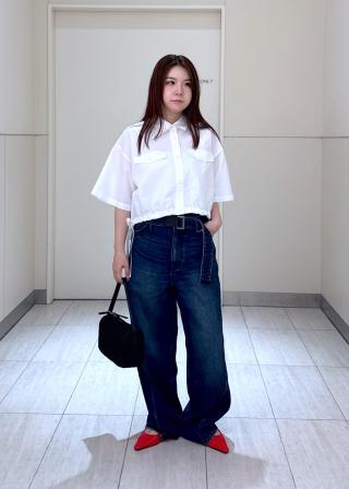ショート丈のシャツでスタイルが良く見えます!