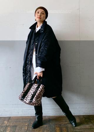 チュニック丈のトップスに、サイクリングパンツ×ロングブーツでアクティブな印象に仕上げるのが、今季一番のおすすめ。スラックスパンツデニムなどに合わせたり、ワンピースの羽織りとしてもぜひ。