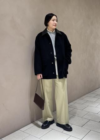 全体的にゆとりのあるサイズ感です。ウール素材で少し肉厚な生地のため、温かみのある素材感です。