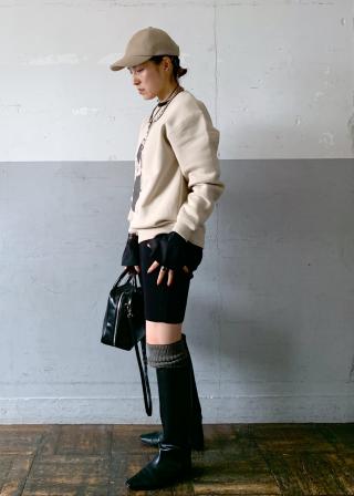 スウェットを主役にしたデニム合わせ、リーンシルエットのスカートを合わせた女性らしいスタイリングもおすすめです。