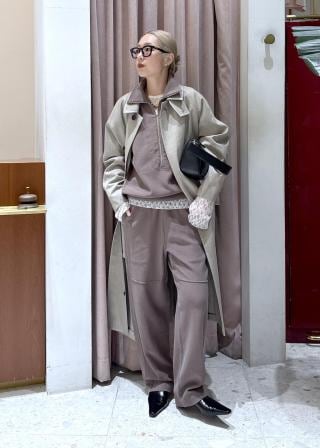 程よい着丈で、同素材の別注 SWEAT WIDE PANTS(品番:EUS36630)とセットアップでの着用もおすすめです。
