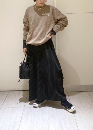 シンプルなクルーネックスウェット。背中のバックプリントとフロントのワンポイントのロゴがアクセントに。ウエスト部分のリブがしっかりしていることによる溜まり感があり、トレンドシルエットを叶えてくれるデザイン。