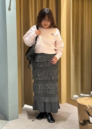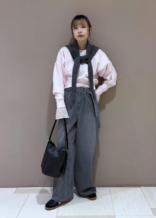 ワイドパンツやボリュームのあるスカートと合わせるのがおすすめ。