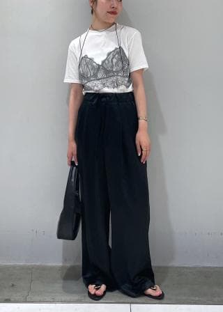 ヴィンテージランジェリーのトロンプルイユを施し、女性らしさ、華やかさがあるTシャツに仕上げました。