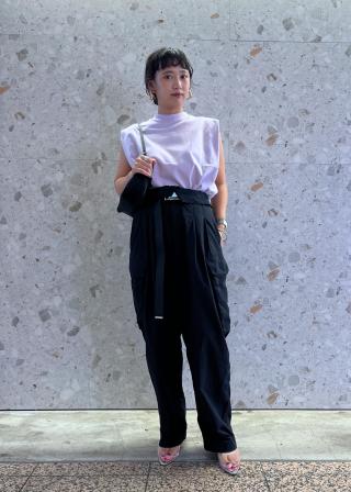 肩が隠れるデザインのノースリーブなので、肩出しが苦手な方にもチャレンジしていただきやすいです。