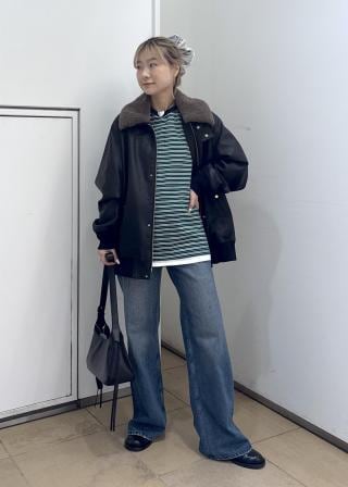 レイヤードしてあるようなデザインなので1枚でさらっと決まるアイテム。サイズ感はゆったりです。
