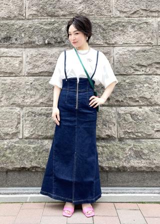 ゆるっと着ていただくのがとても可愛いサイズ感です。オーバーサイズのトップスは多いかと思いますが、シルエットデザインを入れすぎず、絶妙なこの丈感はなかなかありません。オーバーで出してきていただくのはもちろん、ボトムにインしても案外モタつかず◎