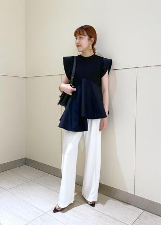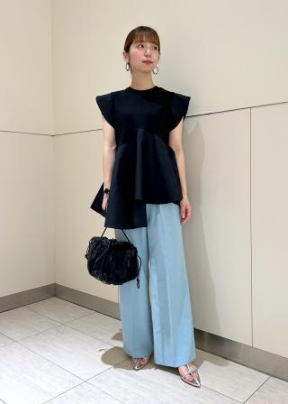 デザイン性のあるトップスなので、シンプルなコーディネートにプラスするだけで華やかなスタイリングに。きちんと感のあるスラックスパンツはもちろん、イージーパンツやリーンシルエットのスカート、デニムにも好相性。パンツにもスカートにもバランスよく決まる着丈なので、様々に楽しんで。