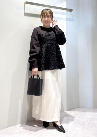 デザインコンシャスなトップスなので、シンプルなボトム合わせがおすすめ。きれいめのスラックスやタイトスカートから、カジュアルなデニムパンツまで幅広いスタイリングにおすすめ。