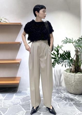フェザートップスはクロップド丈で、様々なボトムスと合わせやすく、夏は単体で、秋はジャケットのインナーにも出来て着回し力抜群です!