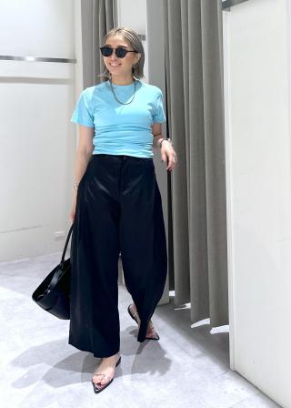 ベアトップはサイドのギャザーがポイントで着用するだけでニュアンスの出るデザインで、Tシャツはコンパクトでシンプルなデザインがデイリー使いにぴったりなクルーネックTシャツ。