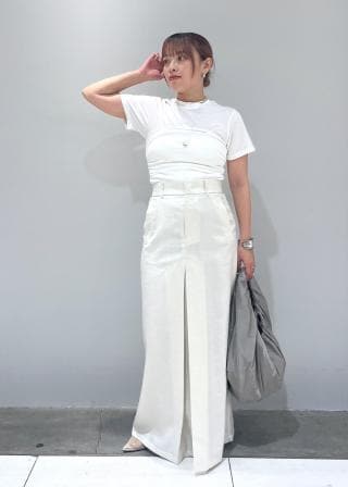 Tシャツにセットのベアトップを胸位置に合わせてレイヤードや、ベアトップを2つ折りにし裾位置に合わせることで、裾ワイドリブTシャツ風に着ても◎ベアトップはお手持ちのシャツやカットソー、ニットの上にレイヤードしてスタイリングのアクセントを楽しむのもおすすめ。それぞれ単品で汎用性高く使うことも可能な為、1枚あると様々な着まわしが出来るアイテム。