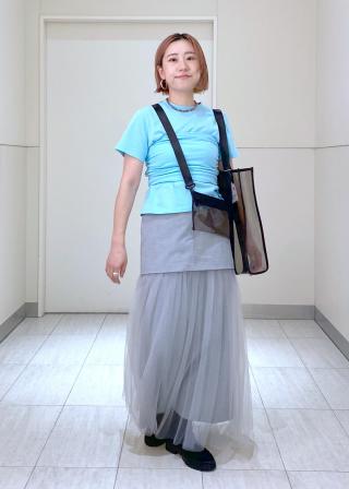 Tシャツにセットのベアトップを胸位置に合わせてレイヤードや、ベアトップを2つ折りにし裾位置に合わせることで、裾ワイドリブTシャツ風に着ても◎ベアトップはお手持ちのシャツやカットソー、ニットの上にレイヤードしてスタイリングのアクセントを楽しむのもおすすめ。それぞれ単品で汎用性高く使うことも可能な為、1枚あると様々な着まわしが出来るアイテム。