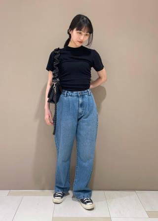 ベアトップはサイドのギャザーがポイントで着用するだけでニュアンスの出るデザインで、Tシャツはコンパクトでシンプルなデザインがデイリー使いにぴったりなクルーネックTシャツ。