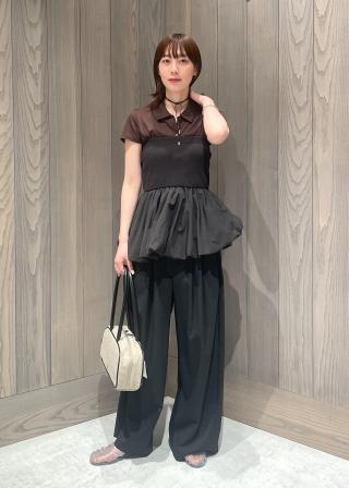 ペプラムの形が立体的なので、 ボトムにはすっきりしたシルエットや柔らかな素材のボトムを是非。