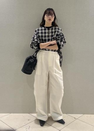 ベーシックなスラックスにフラットミュールなどを合わせてリラックス感のあるスタイリングがおすすめ。