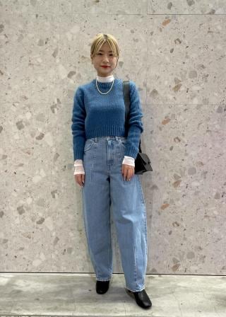 身体にフィットするシルエットなので、ニットの中に重ね着をした時にもごわつかずに着れます。