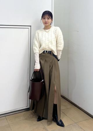 薄手で透け感のあるニットです!1枚着でも万能ですが、薄手なのでレイヤードにも万能です◎