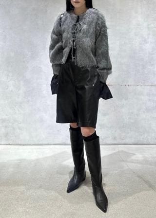袖口をシャツのようなやや透け感のある布帛で仕上げることで、異素材のフレアシルエットが目を惹くデザイン。